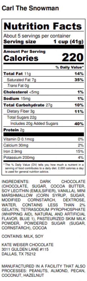 Meet Carl, the iconic drinking chocolate snowman from Kate Weiser Chocolate—a sophisticated indulgence featured in Oprah's Favorite Things 2018. Crafted with a luxurious dark chocolate shell and filled with premium hot cocoa and delicate mini marshmallows, Carl transforms an ordinary evening into an extraordinary experience. Simply place him in warm milk and watch as he melts into six servings of the most decadent hot chocolate imaginable. An elegant gift for discerning palates and chocolate enthusiasts alike.