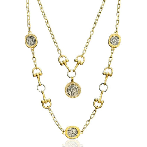 Tat2 Designs Vintage Pavia Coin & Frame Necklace-Silver
