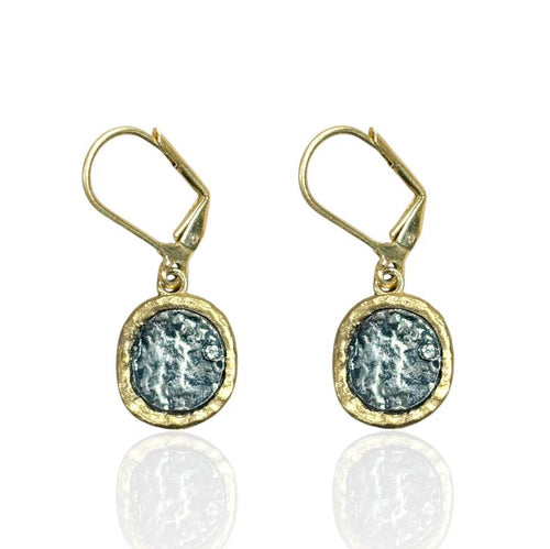 Tat2 Designs Pavia Coin & Frame Dangle Earrings-Vintage Silver