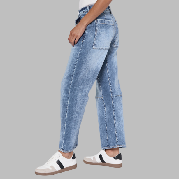 Experience sophisticated style and comfort with the Dear John Lasso Jean in Western Hue. These barrel fit jeans feature a flattering high-rise cut and loose straight leg, perfectly balanced with a clean hemline. Crafted from a premium cotton and spandex blend, they offer exceptional flexibility and comfort. With a 26.5" inseam, these versatile jeans seamlessly adapt to any occasion, making them an essential addition to a modern wardrobe.