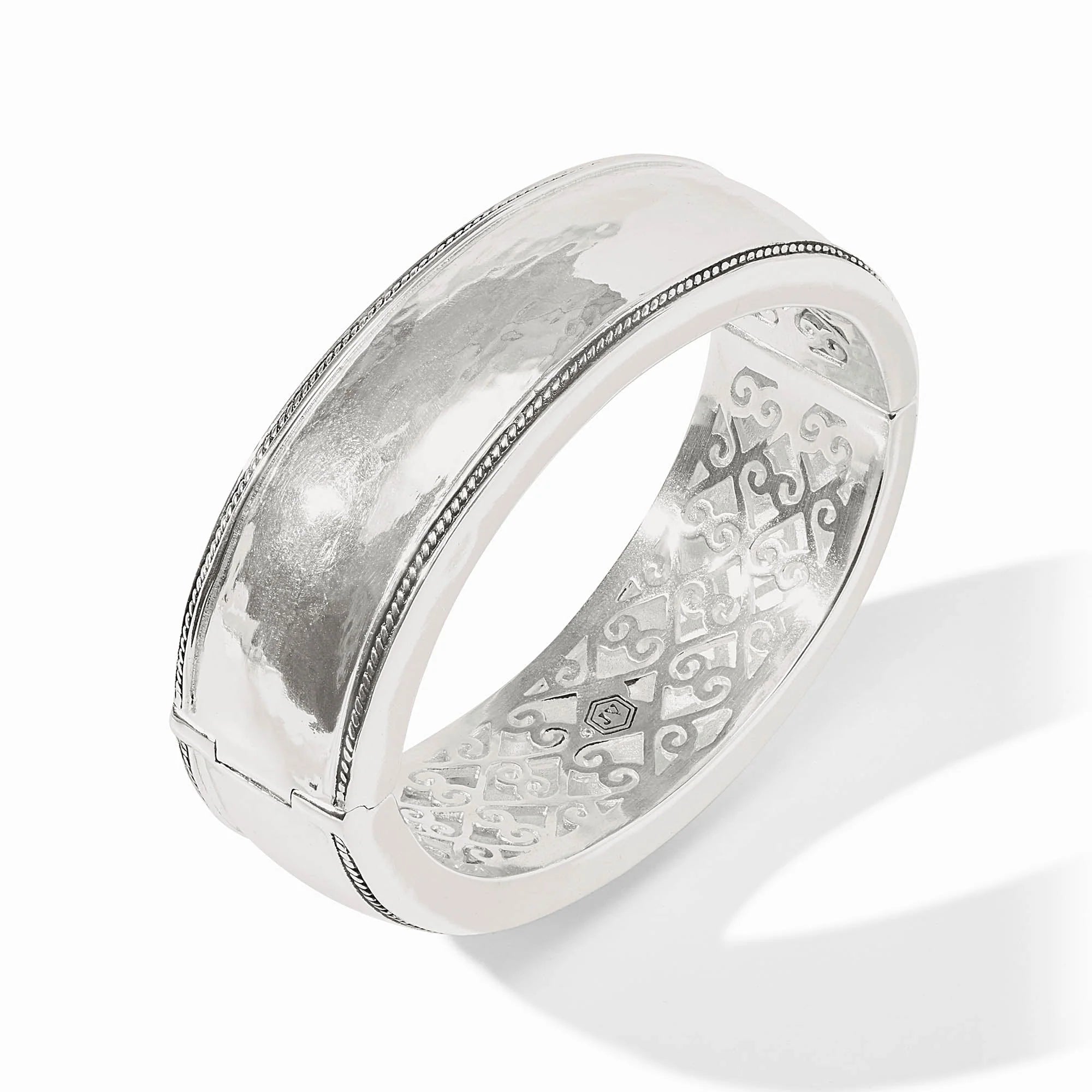 Add a splash of sparkle to your day with the Julie Vos Cannes Statement Hinge Bangle in silver. This bold yet elegant bracelet effortlessly clips on with a smooth hinge, making it a fun and easy way to elevate any outfit. Its sleek silver finish shines bright, perfect for turning heads whether you're out with friends or at a casual brunch. Playfully timeless, it’s the little twist your jewelry collection has been waiting for!