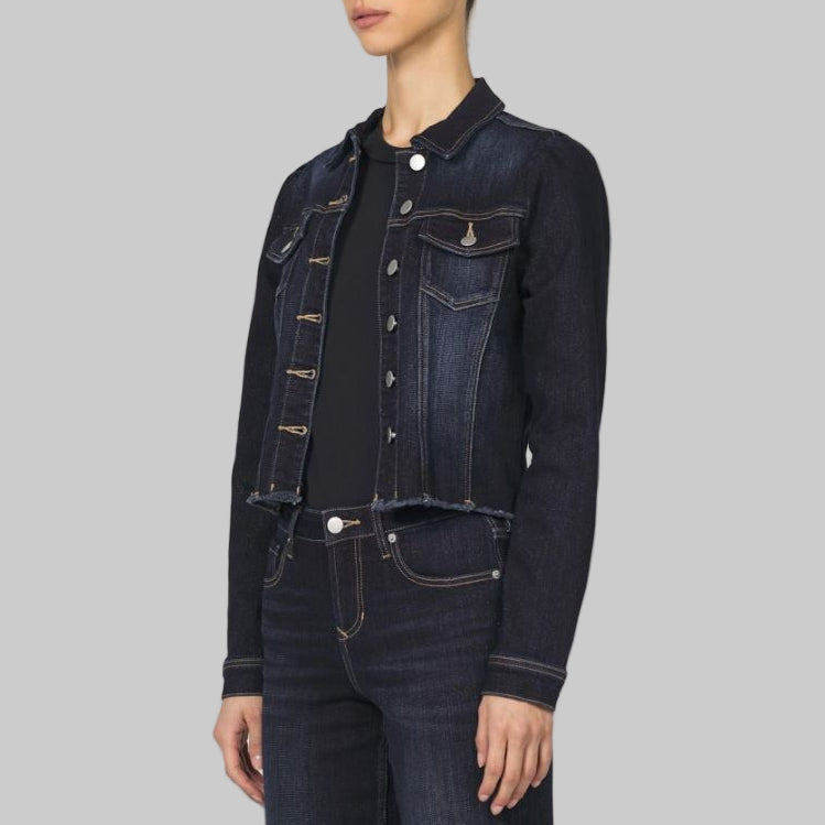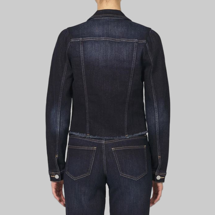 Step into refined style with the Dear John Roselyn Denim Jacket in Daring Indigo. Designed with elegant puff sleeves and a tailored silhouette, this jacket seamlessly blends contemporary fashion with classic charm. The frayed hem adds just the right amount of edge, making it a versatile piece for any wardrobe. Experience confidence and comfort, wrapped in a jacket that looks as impeccable as it feels.