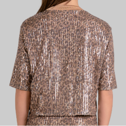 Turn heads effortlessly in the Elan Sequin Top with its bold cheetah print. Sparkling sequins catch the light with every move, adding a fun and fierce touch to your outfit. Perfect for nights out or any time you want to shine a little brighter.
