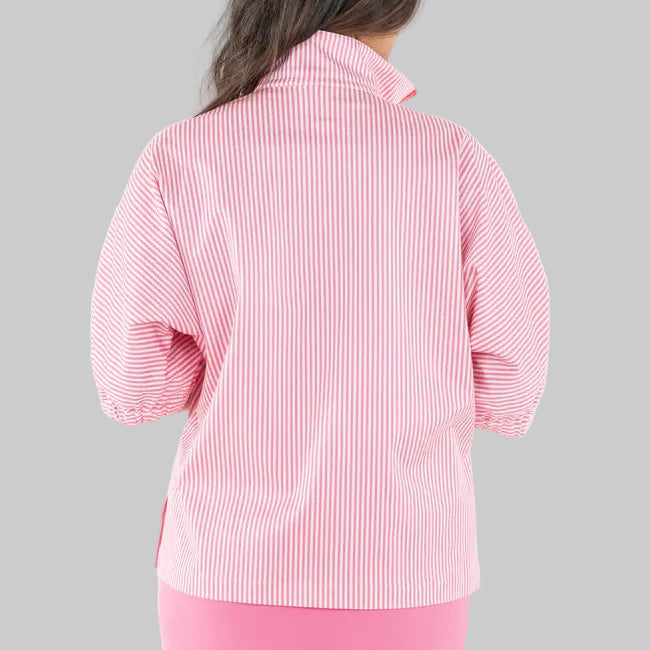 The Emily McCarthy Bonny Top brings effortless elegance to your everyday wardrobe. Crafted from lightweight twill in a delicate pink carnation stripe, this piece offers a refined aesthetic that transitions seamlessly from office to weekend. The breathable fabric ensures comfort throughout the day, while the timeless striped pattern adds visual interest without overwhelming your look. Perfect for layering or wearing solo, this top pairs beautifully with tailored trousers, denim, or skirts for a polished appearance.
