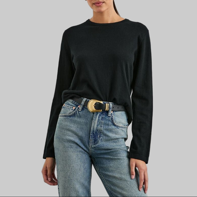 Experience refined comfort with this long-sleeve tee crafted from a luxurious cotton-cashmere blend. Its buttery soft fabric gently embraces the skin, while the crew neckline and tailored fit enhance your silhouette with understated elegance. Perfect for transitional weather, this tee offers warmth without compromising style—a sophisticated essential for your wardrobe.